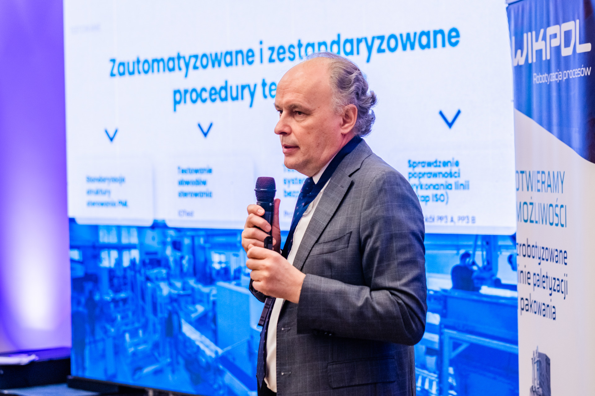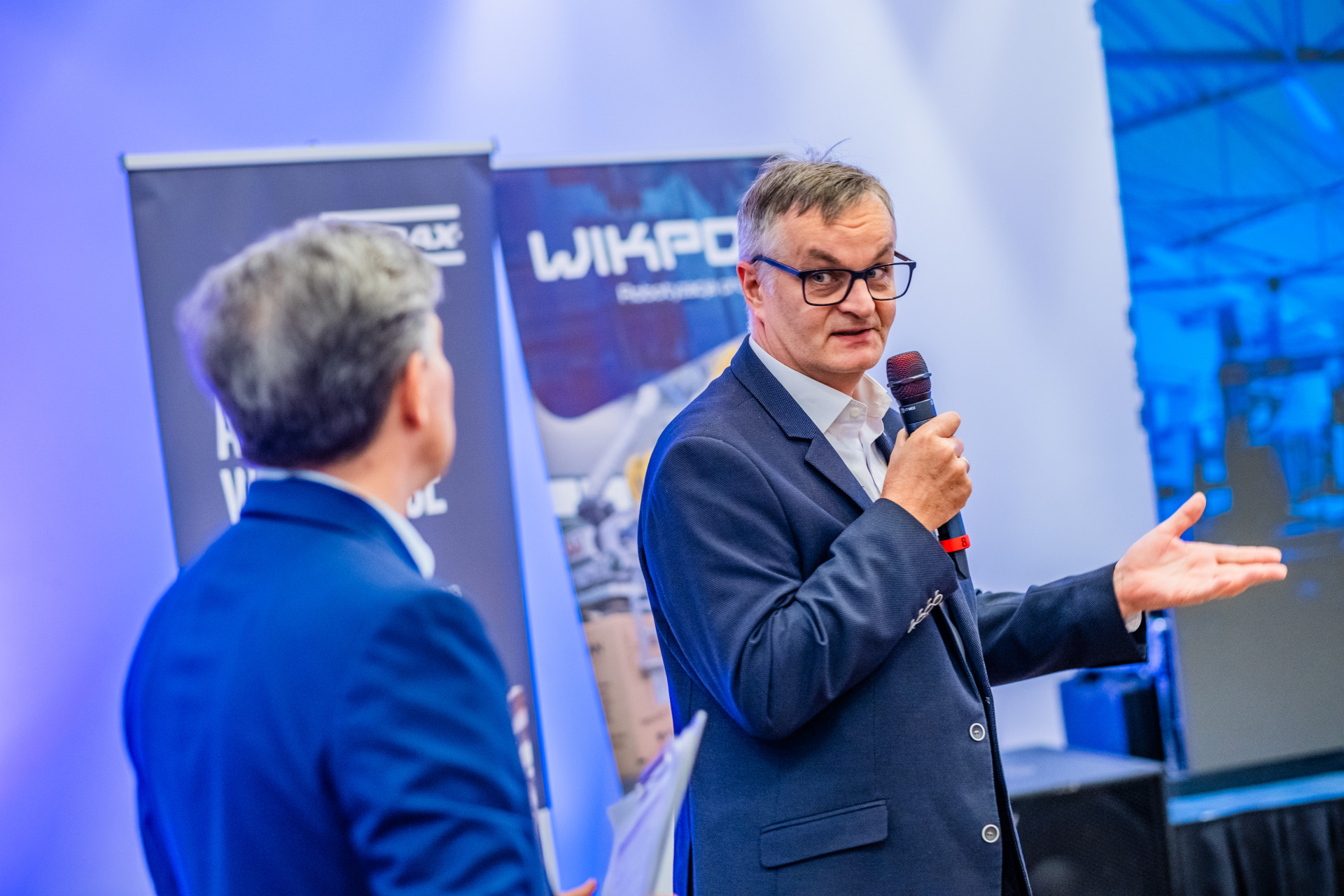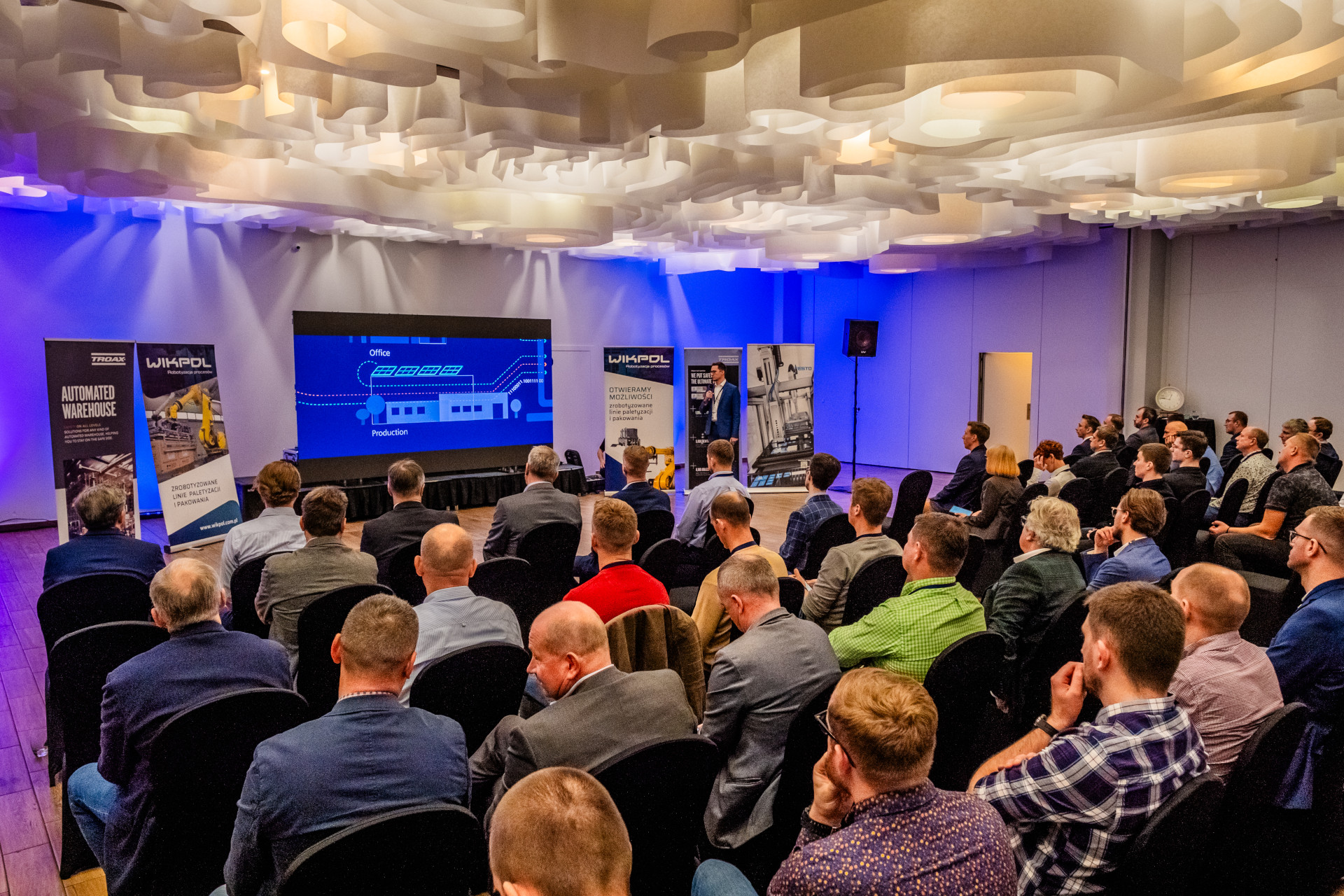 Uatrakcyjnieniem naszego panelu był możliwość przyjrzenia się zrobotyzowanym liniom paletyzacji i pakowania w rzeczywistości wirtualnej. Ta forma prezentacji zapewnia uczestnikom szerszy ogląd możliwości technicznych Wikplu w atrakcyjnej postaci. Jest też sposobnością poznania różnorodnych rozwiązań stosowanych przez naszą firmę.