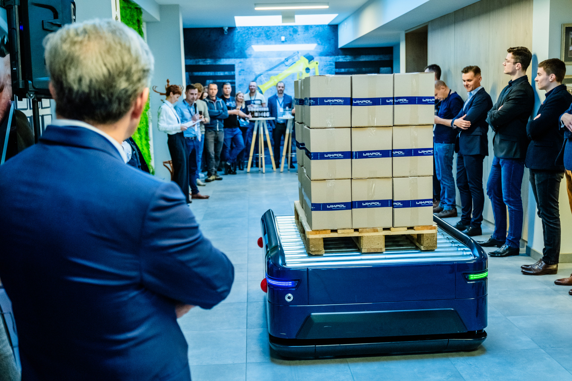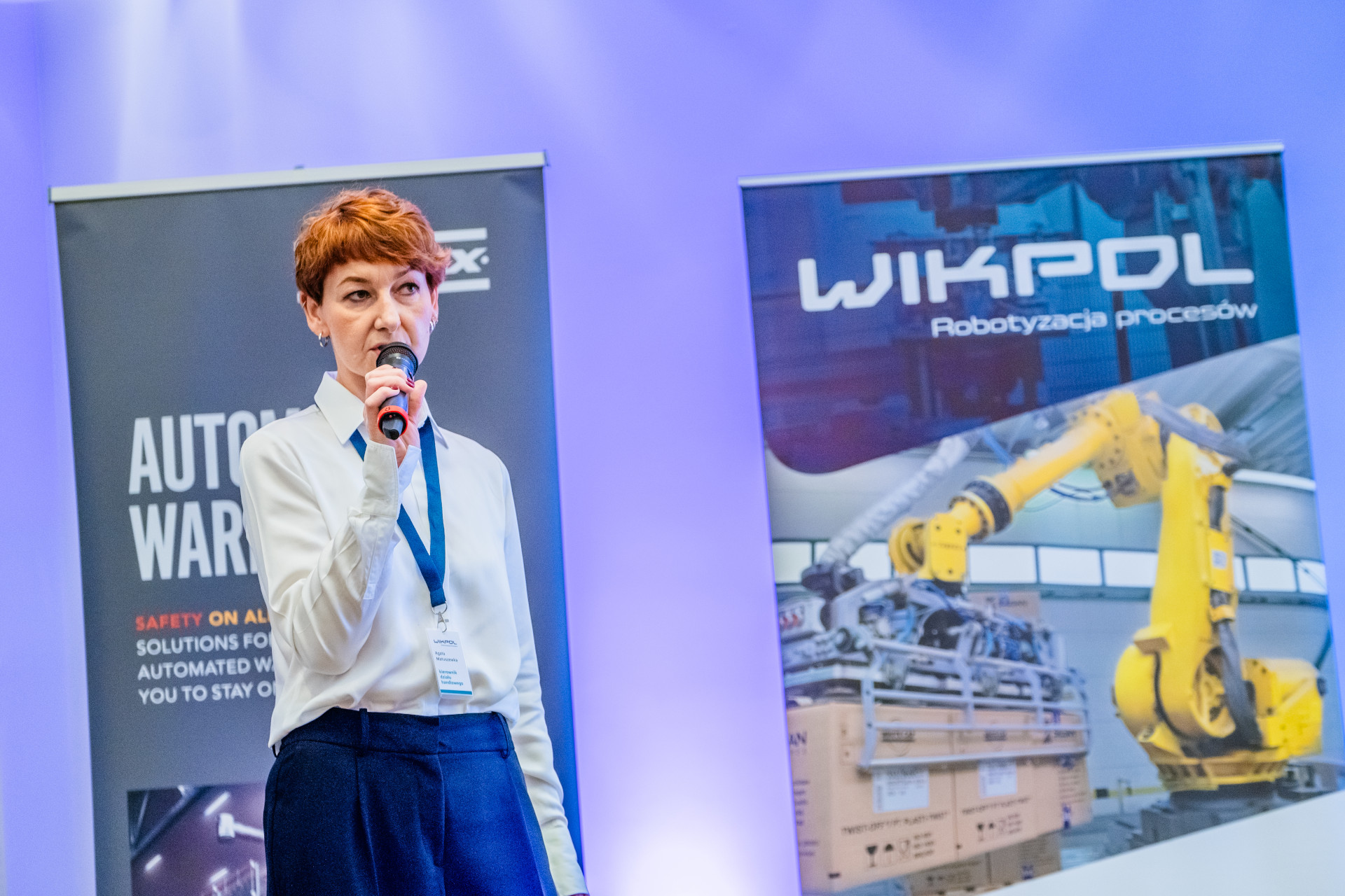 W ramach naszego panelu zaprezentowaliśmy również autonomiczne roboty mobilne Wikar HV zaprojektowane specjalnie pod kątem współpracy z liniami pakowania i paletyzacji. Zastosowanie AMR-ów znacząco zwiększa elastyczność rozwiązań intralogistycznych