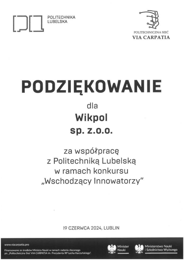 Wikpol wspiera uczestników konkursu Wschodzący Innowatorzy, organizowanego przez Politechniczną Sieć Via Carpatia*